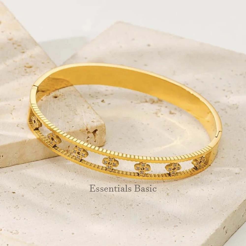 PVD 18K Gold Plated Over Stainless Steel Gold tone Waterproof & sweat proof + Anti Tarnish. Hypoallergenic safe for all kind of skin Luxurious Premium Quality For The Price! Can be Worn everyday as the material is durable and long lasting. A Perfect Gift